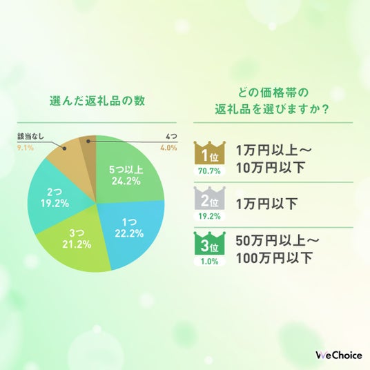 最も多い割合の約24%の方が「5つ以上の返礼品」を選んでいることが分かりました。
