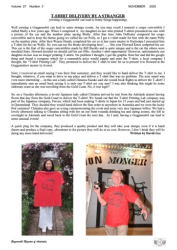■ 世界へ広がる、小さな奇跡その後、この出来事は、David様の記事として、Goggomobileコミュニティのニュースレターに「T-shirt delivery by a stranger(ストレンジャーによるTシャツ配達)」というタイトルで掲載され、ヨーロッパ、北米、南アフリカなど、世界中の仲間たちへと共有されました。