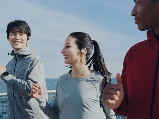 丈夫なのに肌触りがソフトなナイロン素材を使用し、首周りにフィット。最大再生時間は20時間と長時間ストレスフリー。独自の「PSZ(パーソナライズドサウンドゾーン)」技術を搭載し、オープンイヤー型イヤホンの弱点であった「音漏れ」を最小限に抑える。耳をふさがないから家族の呼びかけに気づくことができ、イヤホンを着けたままでも会話が可能。