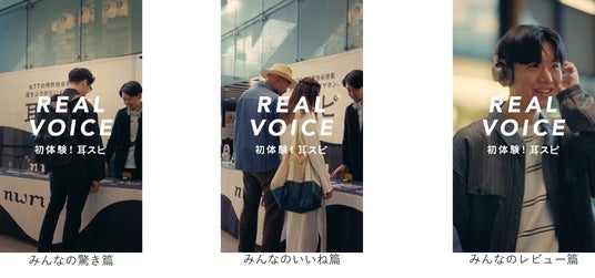 REAL VOICE -初体験!耳スピ-」と題し、体験会で初めて耳スピを体験した10組のリアクションや感想を収めたショート動画コンテンツ。総集編3本に加え、10組のリアルボイスを収録した10本を展開します。