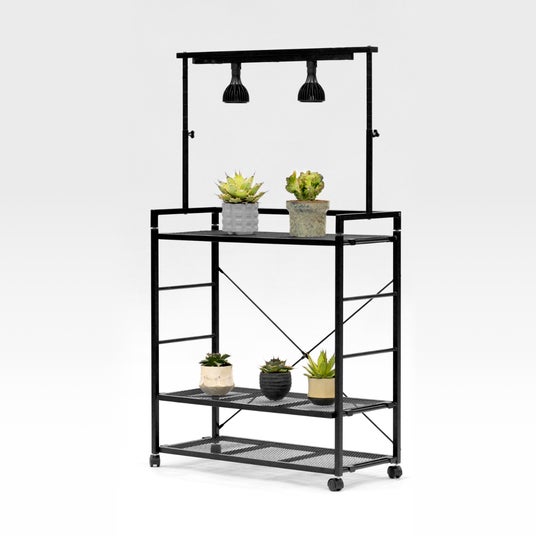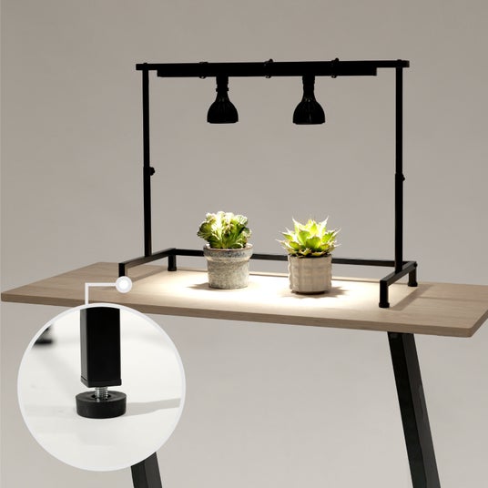 お部屋に癒やしを与えてくれる存在として、近年人気のビザールプランツ。アガベやパキポディウムなどの植物を強く美しく育てるコツは、十分な日照を与えること。特に室内育成においては光が不足しがちなため、植物ライトの使用が推奨されます。ですが、植物にとって適切な場所にライトを設置するのは意外と難しく、ダクトレールを植物棚に固定するのに苦労したり、照射距離を誤って徒長や葉焼けの原因となったりすることも。
