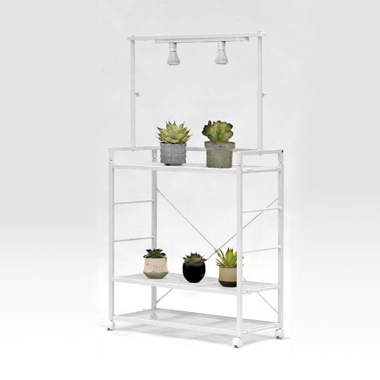 さらに、市販スチールラックへの固定も可能な他、ライトスタンド単体での卓上設置もできる、使い勝手に優れた3Way仕様。植物の大きさや種類、置き場に応じて、自由なレイアウトに対応します。