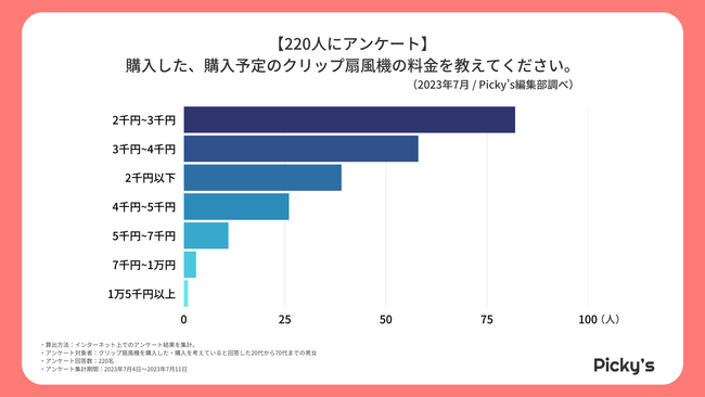 5千円以下のクリップ扇風機が多く選ばれていることが分かります。