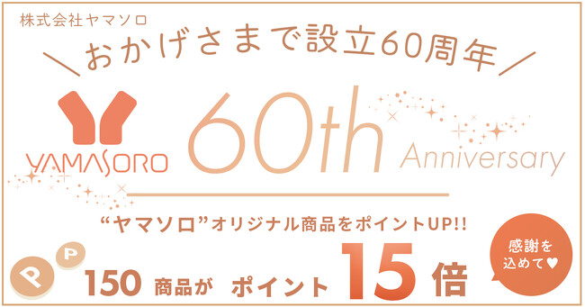 ヤマソロが独自企画した商品約150商品に対して、ポイントを通常の「15倍」プレゼントいたします。