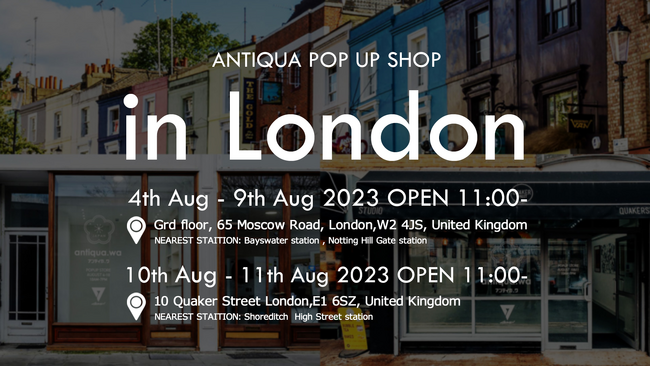 そんな想いから『antiqua(アンティカ)』では、日本だけでなく海外への発信をスタートいたします。その第一歩としてイギリス・ロンドンに初上陸。とくに人気の高い商品を厳選したPOP UP STOREを開催いたします。