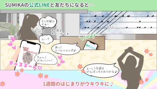 ■毎日がんばるニッポンの猫好きさんに癒しとエールを!「日曜の夜はちょっと憂鬱だなぁ・・」そんな貴方のサザエさん症候群も、可愛い猫ちゃんの癒しパワーで吹き飛ばしちゃおう!という、SUMIKA公式LINEの特別企画ーーその名も「届け!にゃんエール」。
