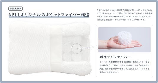 特許を取得したNELL まくら最大の特長は、NELL独自の「ポケットファイバー構造」。