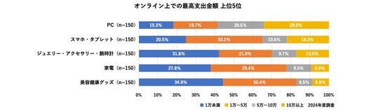 また、オンラインで10万円以上の最高支出金額を回答した商品において、上位を占めるのはPC、スマートフォン/タブレット、家電などの電化製品です。このことから、必要な情報が揃いリスクが十分に軽減されている場合、高価格帯の商品でも生活者はオンライン購入を選択肢に入れる傾向があることがわかります。(図6)