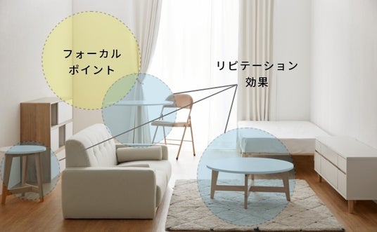 リピテーション効果とは 同じ形状の物を空間内に散らすことで統一感を演出できます。