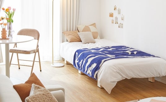 A.家具が決まっていない場合:まずはベッドなどの大きな家具を生活の動線に合わせて配置しよう!まだ家具選びに迷っているという方は、まずはベッドやソファなどの大きな家具から配置してみましょう!生活動線を意識して家具を配置することも大切です。