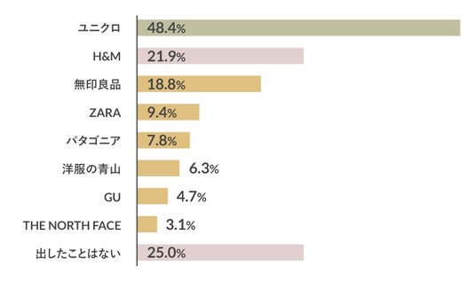 48.4%で一番人気だったのが「ユニクロ」でした。また、「リサイクルに出したことはない」が25.0%で、リサイクルを行っているアパレルブランドがあることは知られつつあるものの、実際に利用している人はまだ一部であることがうかがえました。