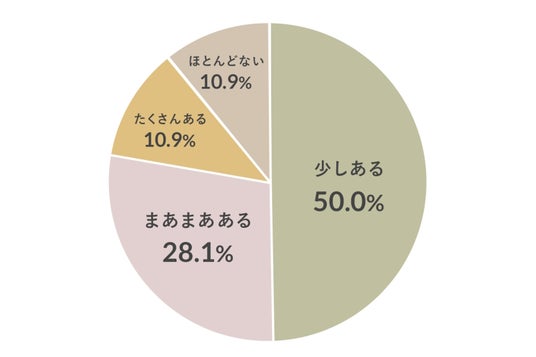 「少しある」が50.0%、「まあまあある」が28.1%で、「たくさんある」が10.9%でした。「ほとんどない」と答えた人は10.9%で、「ほとんど着ない洋服がある」と回答した人は全体の約9割にものぼりました。