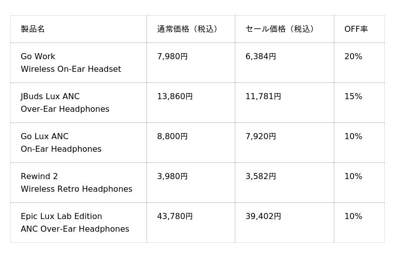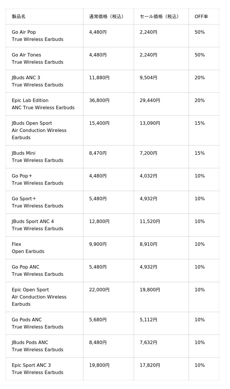 JLab Japan株式会社2024年度に100ドル以下のスポーツイヤホンと50ドル以下のワイヤレスイヤホンのカテゴリーで全米売上No.1(※1)を獲得した「JLab」の日本法人、JLab Japan株式会社(本社:東京都港区、代表取締役:横張 亮輔)は、2026年3月4日(水)20:00~2026年3月11日(水)1:59まで楽天市場で開催される「楽天スーパーSALE」において、ハイエンドモデルから定番品まで、人気のワイヤレスイヤホン・ヘッドホンなど、28製品を最大50%OFFで販売いたします。