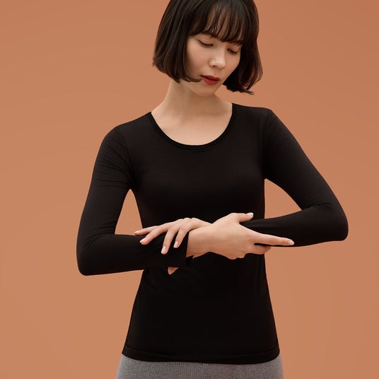 身体から発生する汗や湿気を吸収し、+3.4℃(*2) の吸湿発熱効果で熱に変換。着た瞬間からじんわりとあたたかく包み込みます。