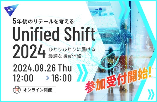 最先端のECプラットフォームを展開するW2株式会社は、リテール業界におけるパーソナライズド体験(ユニファイド)について、様々な企業と未来に向けて考えるオンラインカンファレンスを企画しました。小売業界のトークセッションや、IT提供企業によるAI活用の事例など、多様な視点からの話を通じて学べる本イベントをどうぞお楽しみください。
