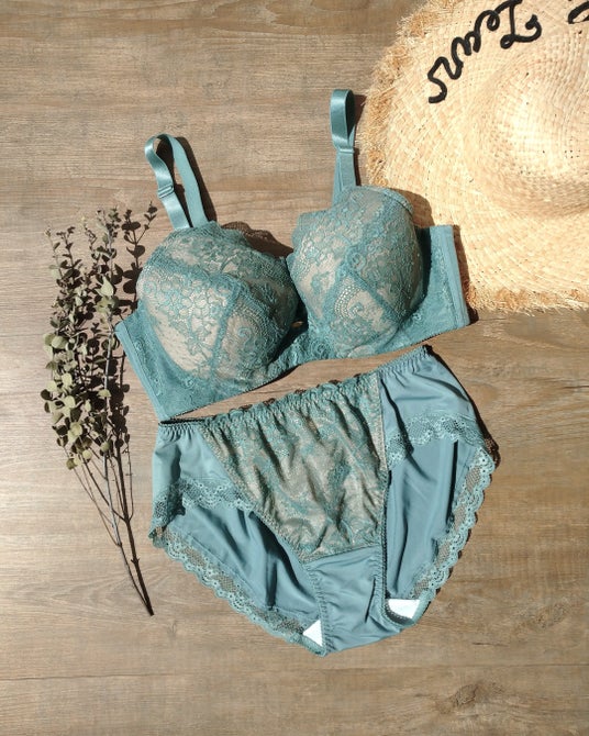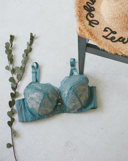 D~Jカップまで、アンダーは140までを展開するレースデザインの「美胸キーパーグランリフト」には新たにグリーンが仲間入り。人気のブラックも増産いたします。