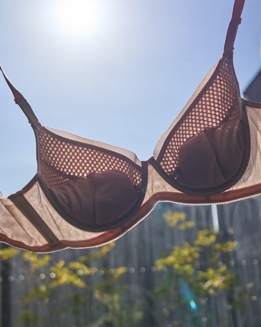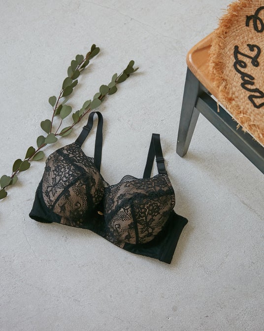肌に溶け込むようなカップ部分のディテールと、キラリと光るゴールドプレートがポイント。