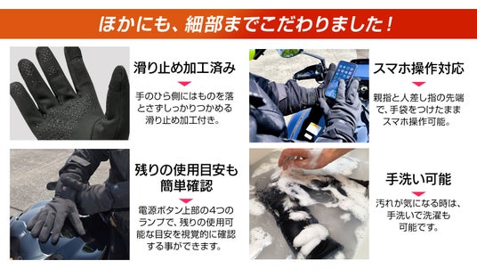 インナーヒーターグローブ詳細はこちら昨年大ヒットした、「電熱インナーヒーターグローブ」が進化して登場!