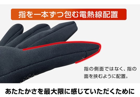 電熱線の太さから配置まで、細やかな工夫を施すことにより、耐久性を向上し、より温かさを感じられるような、究極のスマート型アウターヒーターグローブが完成しました。