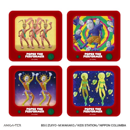 全4種。TV型デザインのステッカー。作中のキャラクター達がいつも見ているあのチャンネルのステッカーも登場。