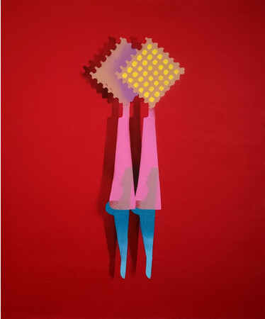 社会のシステムや文脈をジャックし、価値観をずらして見せるストリートアート。これまで、パンクやストリートカルチャーのDIY精神で衝動的なコラージュを主なスタイルとしてきた赤池が、反復と即興の芸術であるステンシル・アートを絵画作品として成立させている点でも注目です。