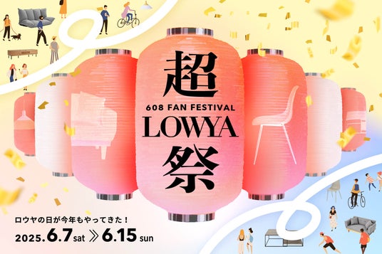 株式会社ベガコーポレーション(本社:福岡県福岡市博多区、代表取締役社長:浮城智和、証券コード:3542)が運営する、家具・インテリアブランド「LOWYA」(呼称:ロウヤ、URL:https://www.low-ya.com/)は、毎年608の日(呼称:ロウヤの日)にファン感謝祭を開催。7年目を迎える2025年は「超LOWYA祭」をテーマに、6月7日(土)の前夜祭を含む全9日間、オンライン(公式サイト/SNS)と実店舗(二子玉川ライズ店/なんばパークス店/イオンモール広島府中店)の2会場にて、全6つのスペシャル企画を展開いたします。