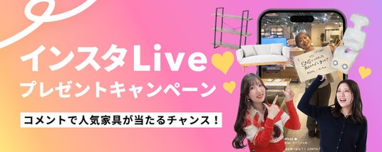 LOWYAのInstagram公式アカウントで行われる、インスタLive配信中にコメントで参加された方の中から抽選で、人気の家具など豪華プレゼントが当たります!