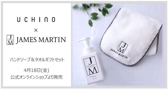 内野株式会社(本社:東京都中央区/代表取締役社長:内野孝信)は、株式会社ファーストコレクション(本社:東京都港区/代表取締役:竹内 伸介)が展開する『JAMES MARTIN(ジェームズマーティン)』とオリジナルタオルを共同開発したことをお知らせいたします。吸水性とやわらかさ、さらに抗菌防臭性に優れたこのタオルは、ジェームズマーティンならではのオリジナルデザインと使いやすいサイズに仕上げています。本商品は、ジェームズマーティンのハンドソープとセットになった「ハンドソープ&タオルギフトセット」として、2025年4月18日(金)正午より公式オンラインショップ(