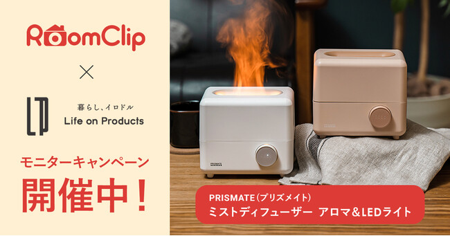 暮らしにイロドリとプラスの価値を創造する製品・サービスを提供するライフオンプロダクツ株式会社(本社:大阪府大阪市、代表取締役:池田 祐一)は、2022年10月17日(月)~23日(日)の期間、日本最大級のインテリア専門SNS「RoomClip(ルームクリップ)」にて、『PRISMATE(プリズメイト) ミストディフューザー アロマ&LEDライト』のモニターキャンペーンを開催。3名様に無料で商品をプレゼントします。