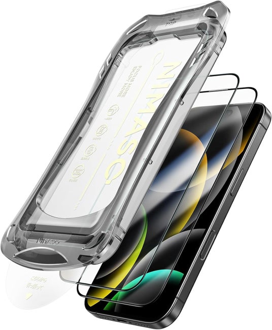 NIMASOの iPhone16 Pro 用 ガラスフィルム は、2ステップで簡単に貼り付け可能で、フィルムが自動的に吸着し気泡が入りにくい構造となっています。9H硬度で飛散防止、厚さ約0.25mmの高透明度ガラスが高感度タッチを実現。黒縁が全面保護し、イヤースピーカー部分も防塵ネットで保護します。指紋防止とスムースタッチで、常に美しい画面を楽しめます。