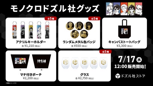 【商品ラインナップ1.】ドズル社モノクログッズドズル社メンバーのモノクロイラストを使用したグッズが新登場します。