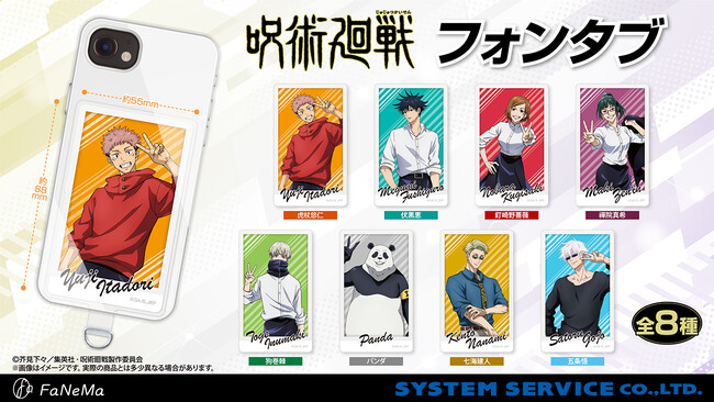 システムサービス株式会社(本社:東京都豊島区、代表取締役社長:田村宗弘)は、アニメ・マンガ・ゲーム作品等のキャラクター商品の企画・製作・販売をする自社ECサイト「FaNeMa」(URL:https://fanema.jp/)にて、TVアニメ『呪術廻戦』より「フォンタブ」を発売いたします。