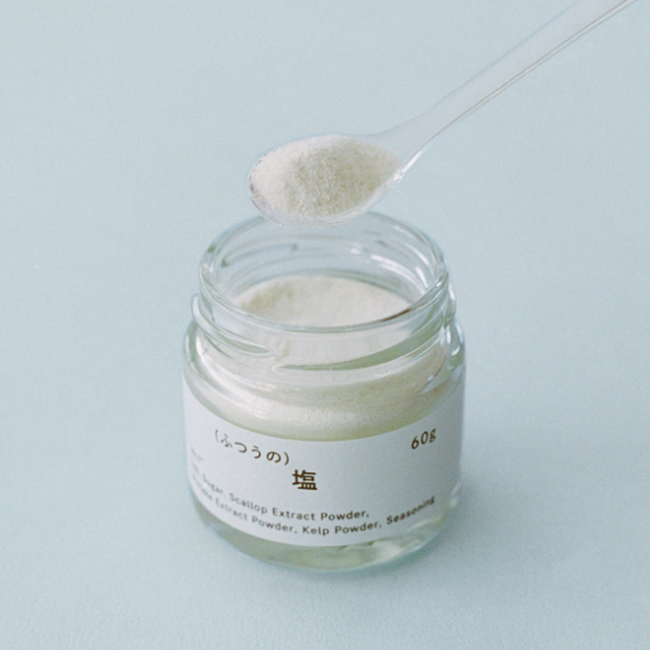 食卓の多種多様な食材・料理に使用される塩。塩が変わることは、食卓が変わることといっても過言ではありません。洗滌天日塩をベースに昆布やホタテといったうま味成分を調合していくことで、食材の味を輪郭を浮かび上がらせる塩味に、味を底上げするうま味が加わりました。ぜひ食べ比べてその違いを感じてみてください。