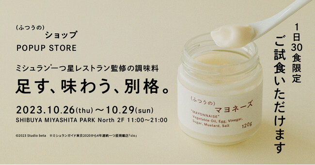 株式会社SUPER STUDIO10月26日(木)よりMIYASHITA PARK内「THE [ ] STORE」にてPOP UP STOREを開催。人気商品「(ふつうの)マヨネーズ」「(ふつうの)塩」を数量限定で試食提供。