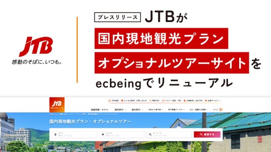 株式会社ecbeing (イーシービーイング 本社:東京都渋谷区、代表取締役社長:林 雅也、以下「弊社」)は、 15年連続EC構築プラットフォームシェアNo.1※1のEC構築プラットフォーム「ecbeing」を導入している株式会社JTBが提供する「国内現地観光プラン・オプショナルツアー」サイトのリニューアルを行ったことを発表いたします。