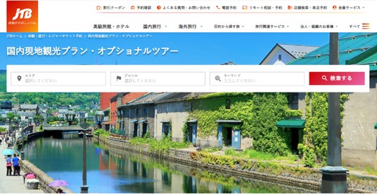 JTBは「国内現地観光プラン・オプショナルツアー」サイトにおいて、