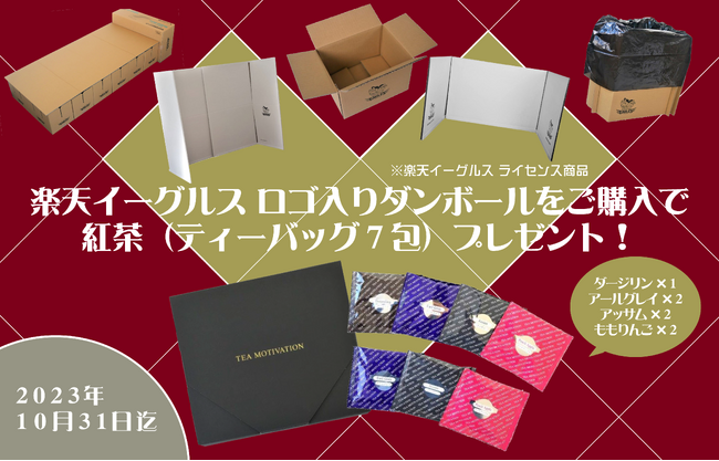 株式会社タチバナ産業株式会社タチバナ産業(埼玉県春日部市、代表取締役 野原将彦)は、自社サイト「だんぼーる本舗」で楽天イーグルスロゴ入りダンボールを購入された方を対象に、紅茶のプレゼントキャンペーンを実施いたします。