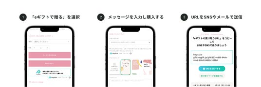 3)購入が完了すると、eギフトの受け取りURLが発行されます。LINEなど各SNSやメールでURLを伝えることでeギフトを贈ることができます。