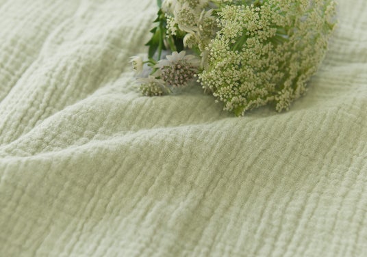 コットン100%の2重ガーゼを使用。サラサラふんわりとした肌触りで、