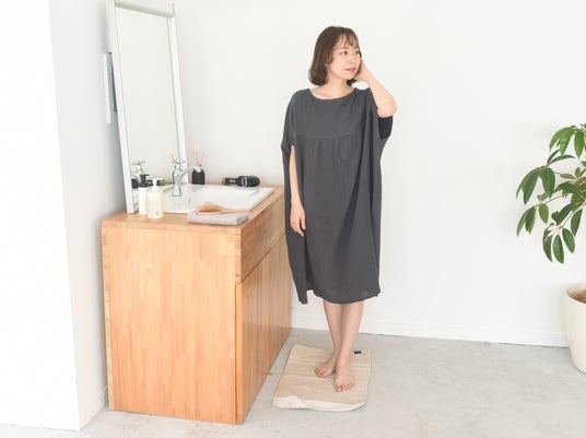なにかとやることの多い、女性のお風呂上りに1枚あると便利なワンピースです。