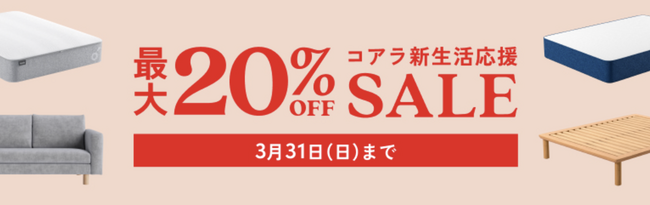 コアラコアラスリープジャパン株式会社(本社:東京都渋谷区、代表:ルスラン・プソノク)は、2024年2月19日(月)~3月31日(日)の間、最大20%OFFになる「コアラ新生活応援セール」を公式販売サイトにて開催いたします。