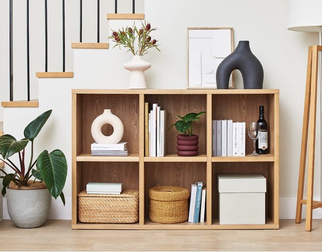 毎日をちょっと豊かに楽しくアレンジ自由に組み合わせられるユニットタイプのシェルフで、毎日の暮らしをアートのように彩りませんか?高級感と温もりを感じさせるウォームアッシュの色合いが、お部屋を洗練された印象に引き立てます。小物や書籍などを収納するのにちょうど良いサイズに仕上げました。人気の2段3列のほか、全5種類展開。