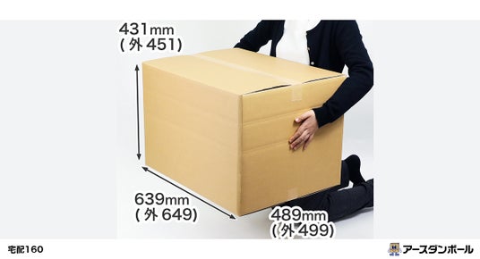 宅配160サイズ用の梱包資材として利用できるよう、ダンボール箱の3辺合計寸法が160cmに設計。