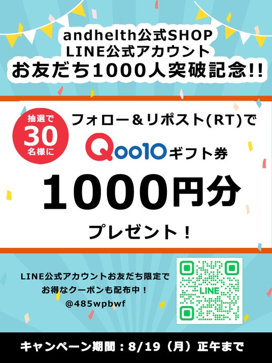 このたび「andhealth Qoo10ショップLINEアカウント」のお友だちが1,000人を突破したことを記念して、公式X(Twitter)上でキャンペーンを実施します。