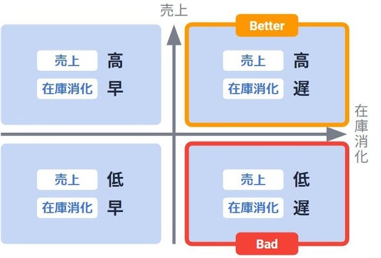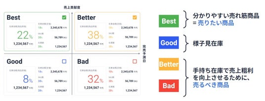 売上と粗利のランクは高く在庫の消化進捗が遅い商品は「Better」と判定
