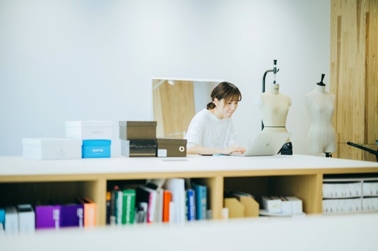 アパレルや雑貨など、オリジナル商品の制作を想定して設けられたスペース。チームでのコミュニケーションを取りながら作業できるよう、台の大きさや高さにこだわって設計されています。