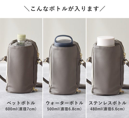 <商品概要>kauliina(カウリーナ)ペットボトルが入るスマホショルダー¥2,970(税込)/ 全3色(ベージュ、チャコール、ブラック)