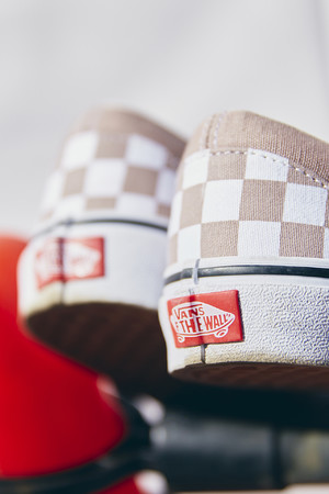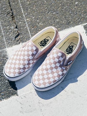 今回セレクトしたのは、着脱しやすくスッキリした印象のスリッポンタイプ。春アイテムと相性の良い淡いベージュのチェッカー柄がさりげないポイントになります。