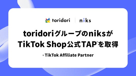 各種インフルエンス・プラットフォーム事業を展開する株式会社トリドリ(本社:東京都渋谷区、代表取締役社長CEO:中山貴之、東証グロース:9337、以下「toridori」)のグループ会社である株式会社niks(本社:東京都渋谷区、代表取締役:高坂龍太朗、以下「niks」)が、”TikTok Shop”公式のTAP(TikTok Affiliate Partner)を取得したことをお知らせいたします。
