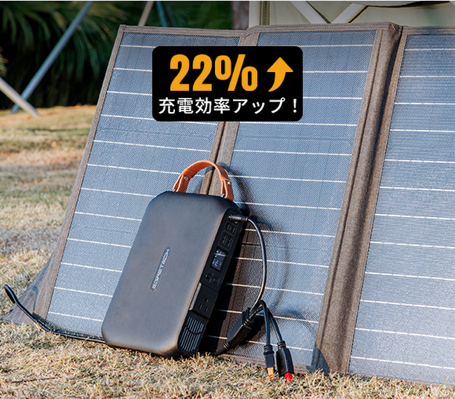 ・100Wソーラーパネル充電に対応。MPPTシステムを搭載、充電効率は22%アップ。